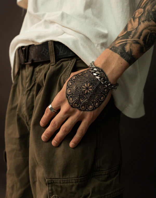 Introduce a sense of calm into your life with the Meditation temporary tattoo by artist Robbie Cook. Measuring 4x4 inches, this tattoo looks like the real deal and lasts 1-2 weeks. Follow @rob.c.art on Instagram for more stunning creations.